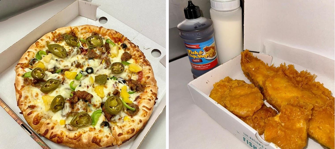 Expect a delicious variety, including fish and chips, burgers, pizzas, kebabs, and more, totaling over 100 menu items.